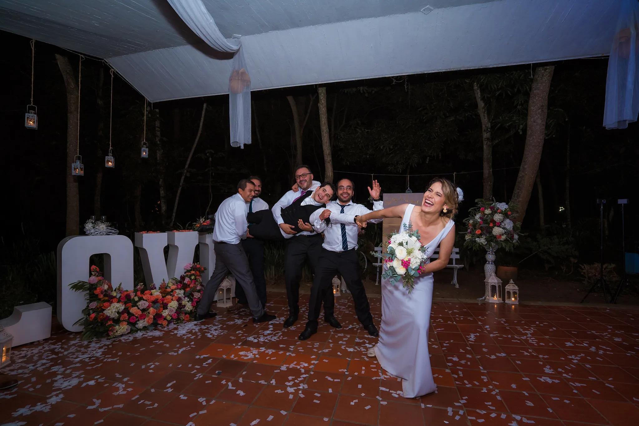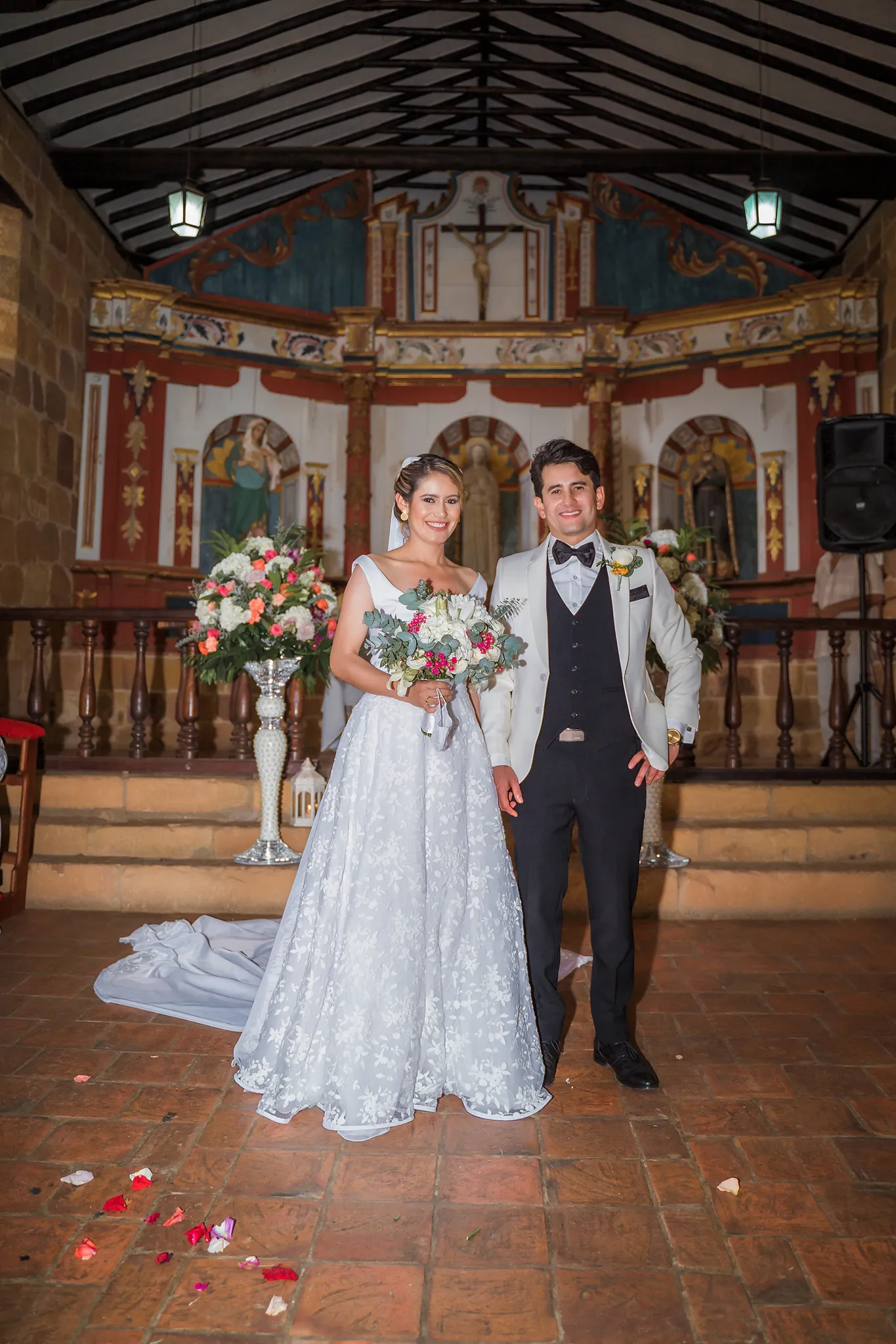 Su ceremonia religiosa se llevó a cabo en la emblemática Capilla de Santa Bárbara, un espacio íntimo y lleno de historia. Luego, la celebración continuó en el mágico entorno del Parque Natural El Gallineral, en San Gil, rodeado de naturaleza y con una atmósfera tranquila y encantadora.