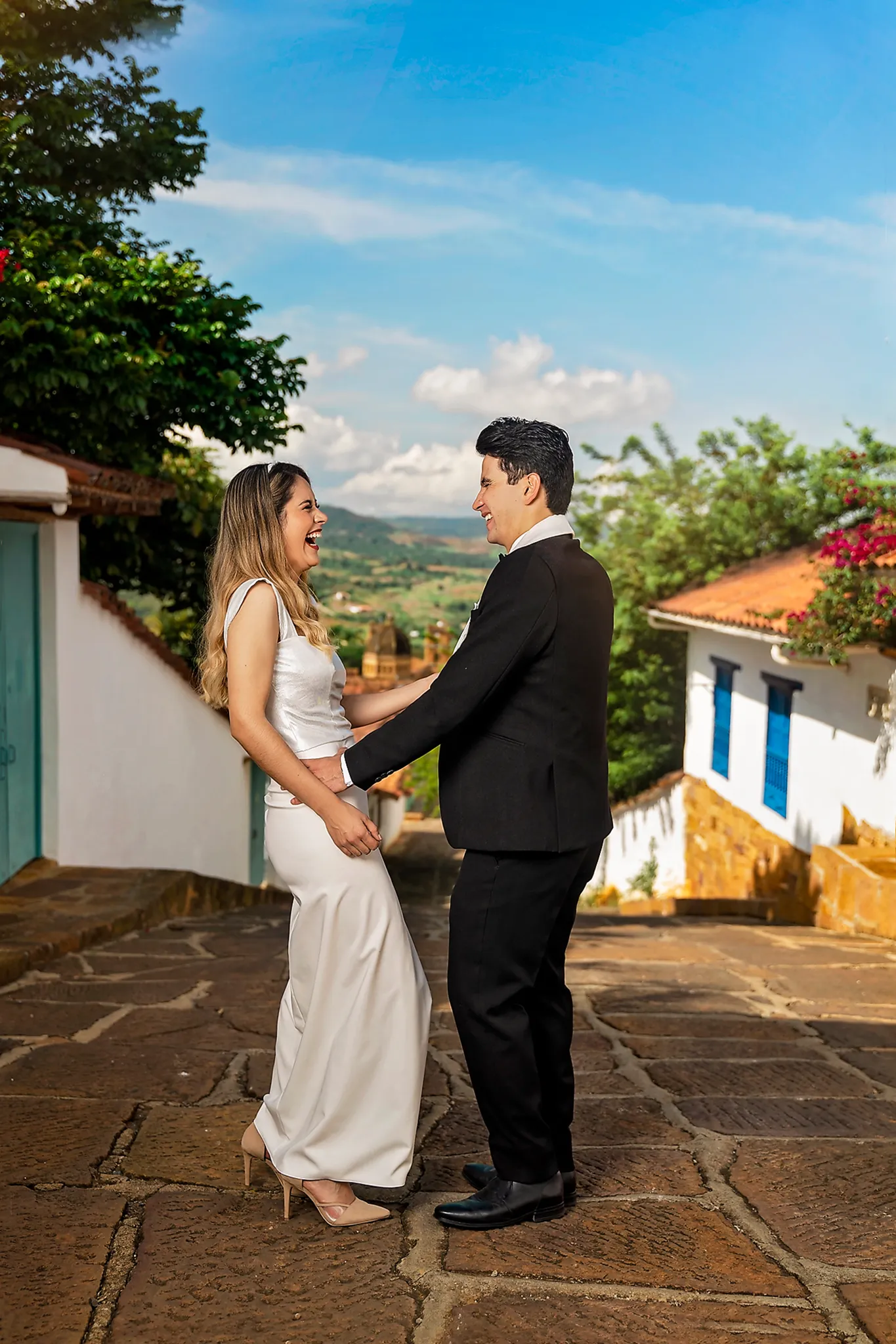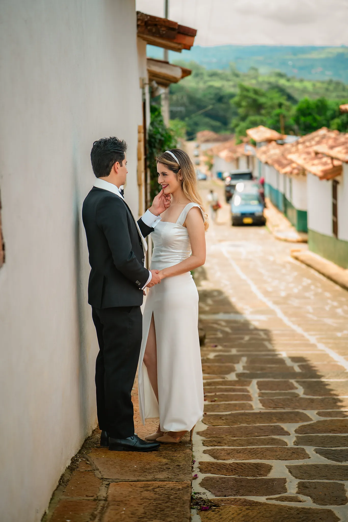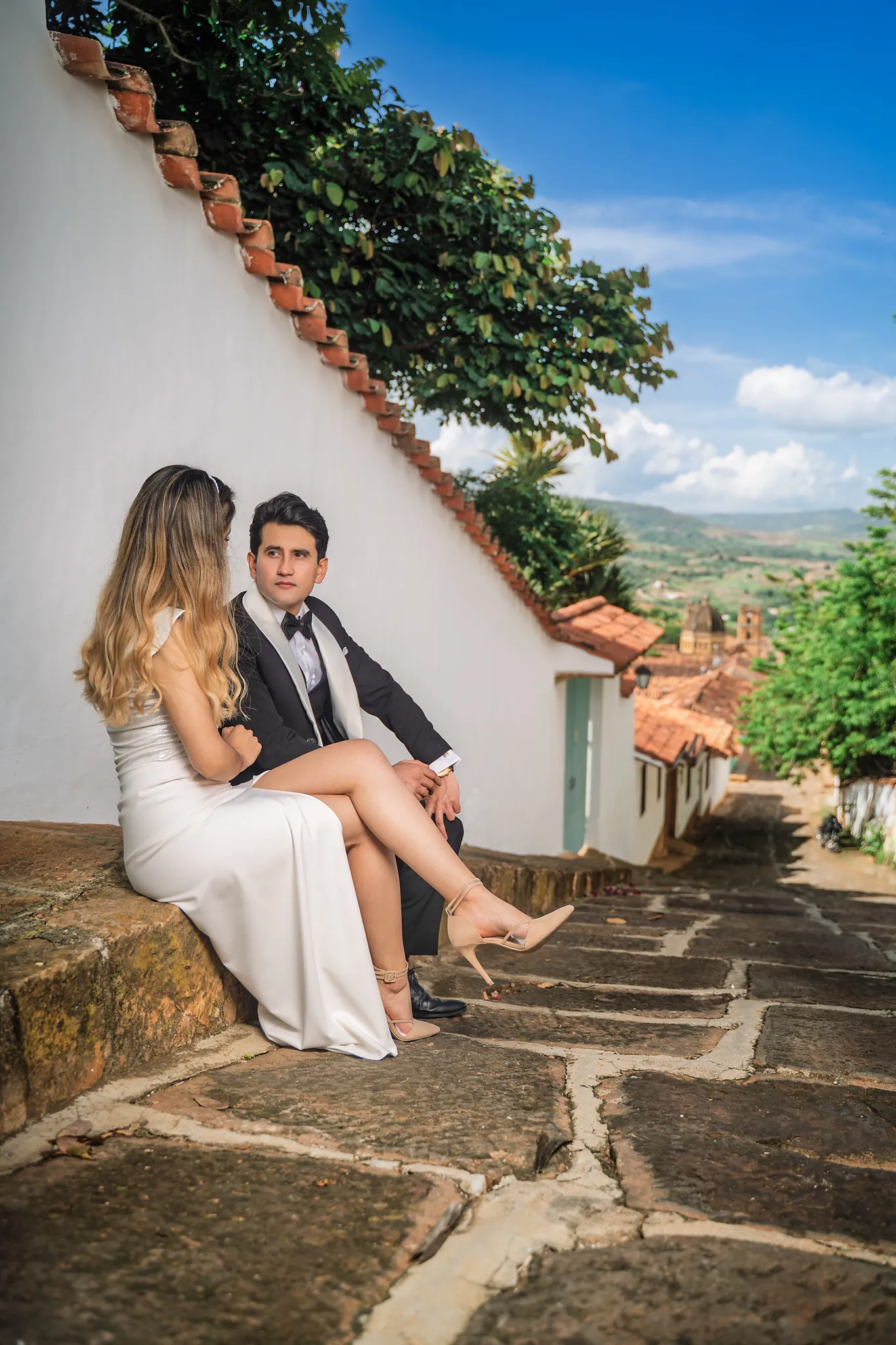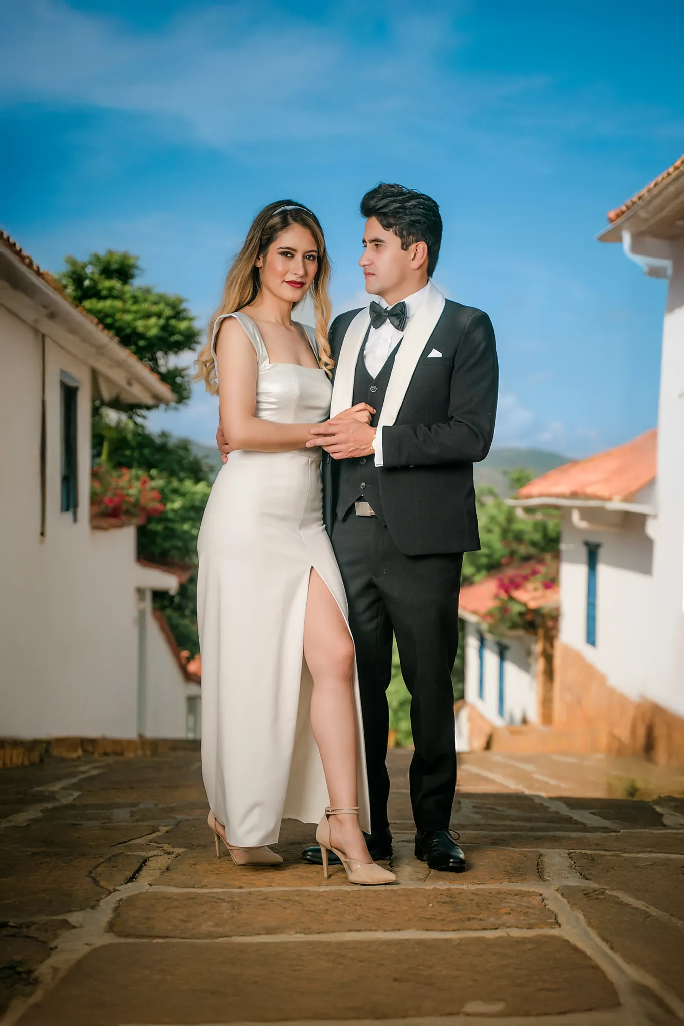 Sindy y Leandro celebraron su unión en uno de los pueblos más románticos y pintorescos de Colombia: Barichara, Santander. La jornada comenzó con una hermosa sesión de fotos preboda realizada horas antes de su ceremonia