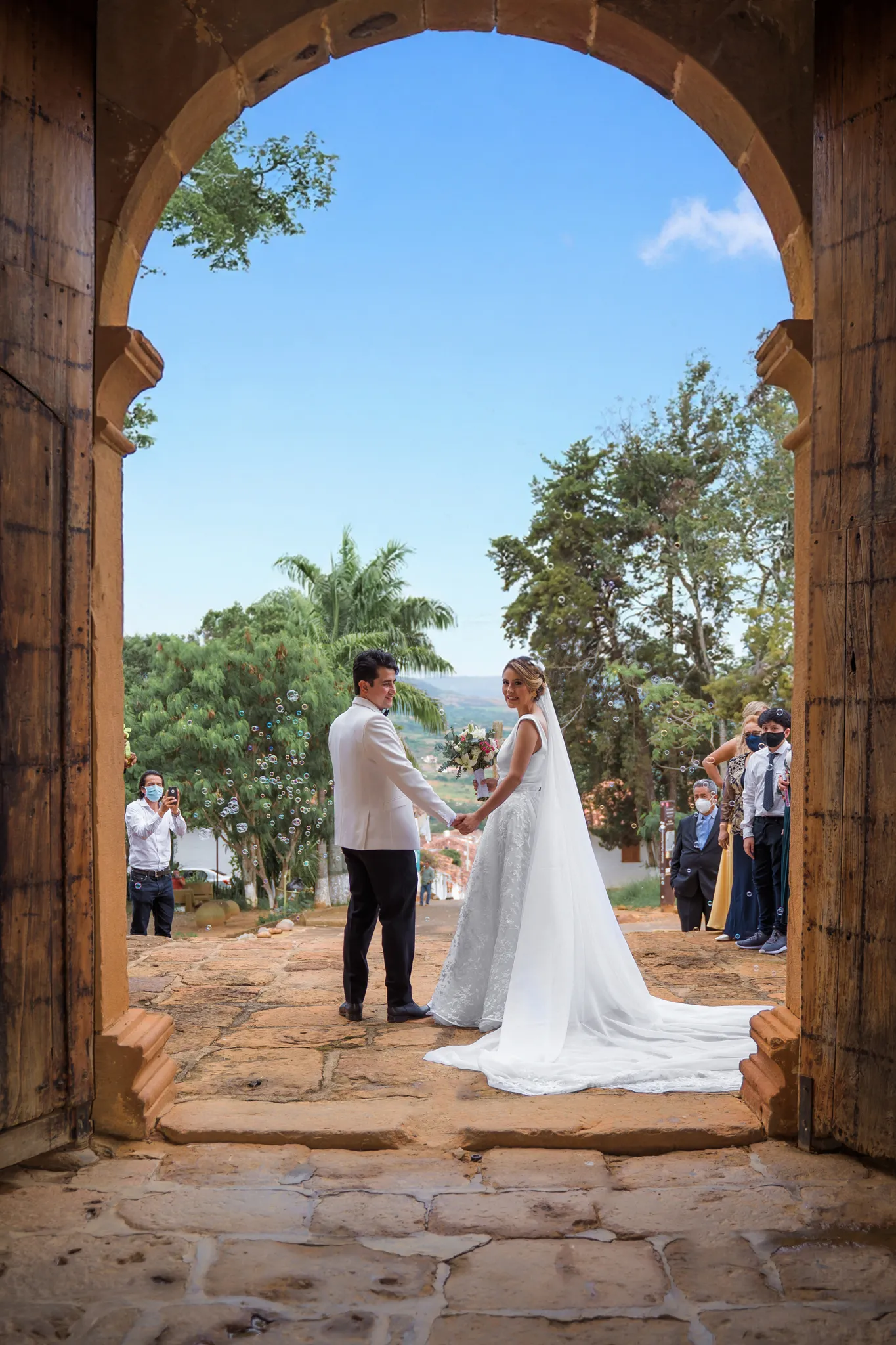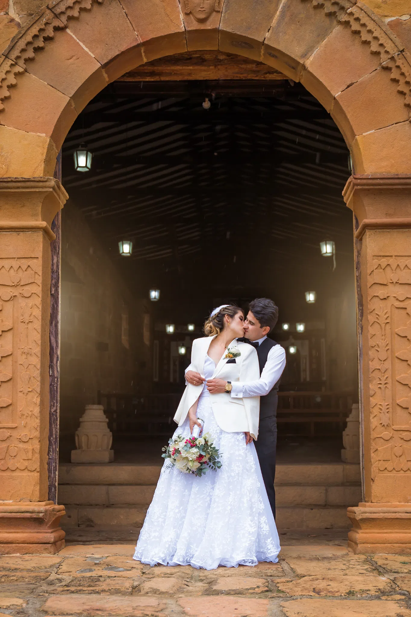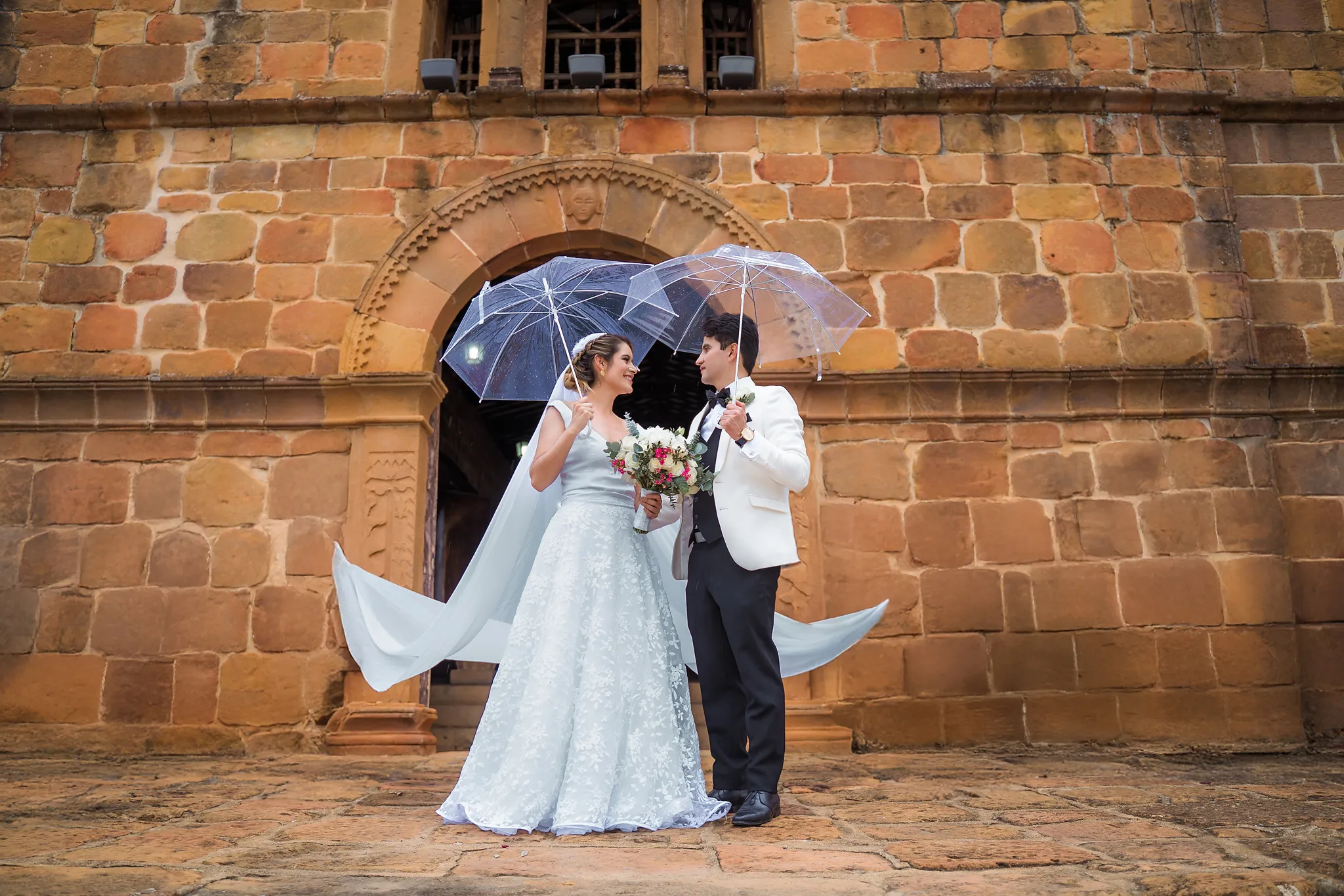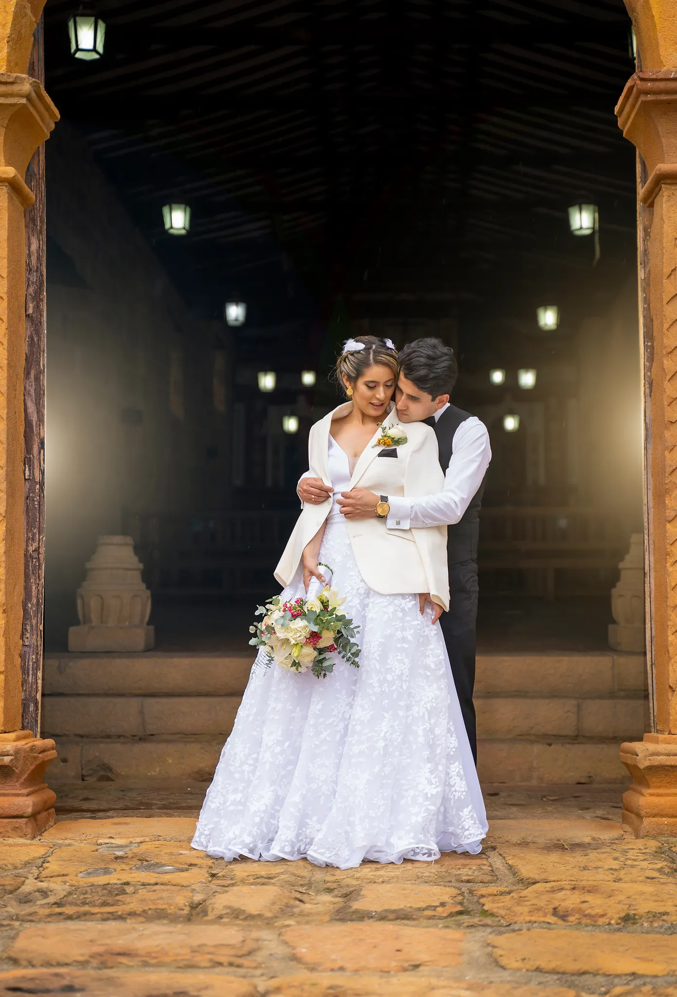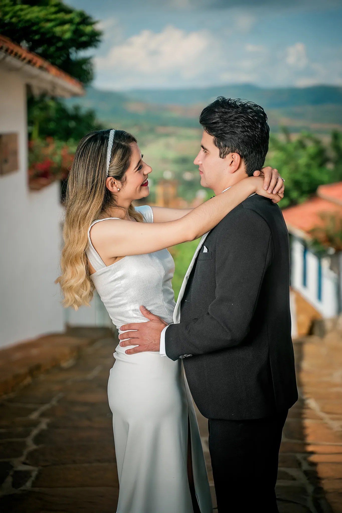 Sindy y Leandro celebraron su unión en uno de los pueblos más románticos y pintorescos de Colombia: Barichara, Santander. La jornada comenzó con una hermosa sesión de fotos preboda realizada horas antes de su ceremonia