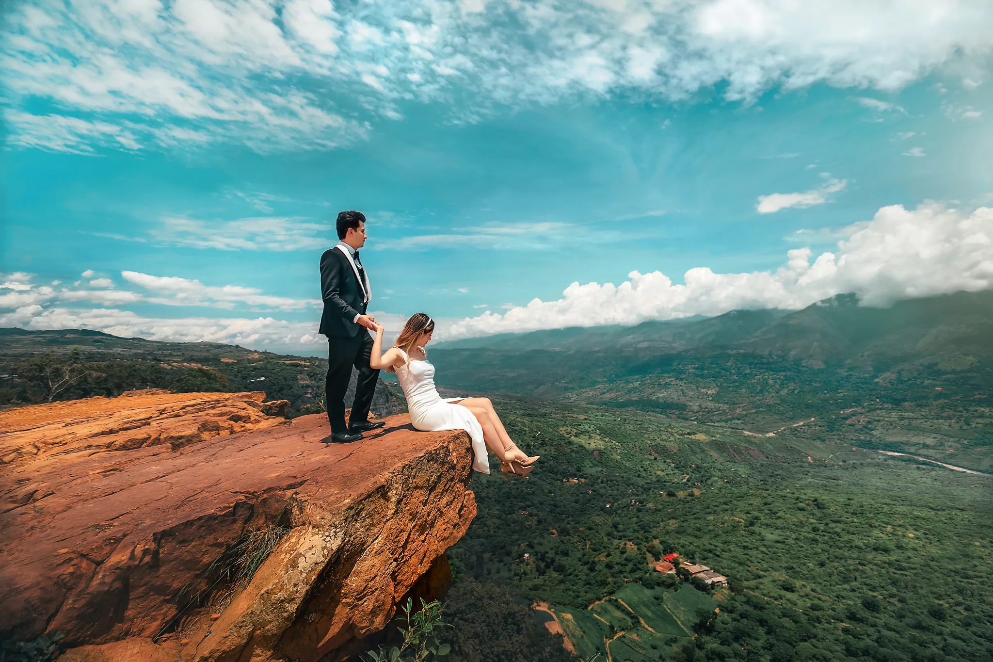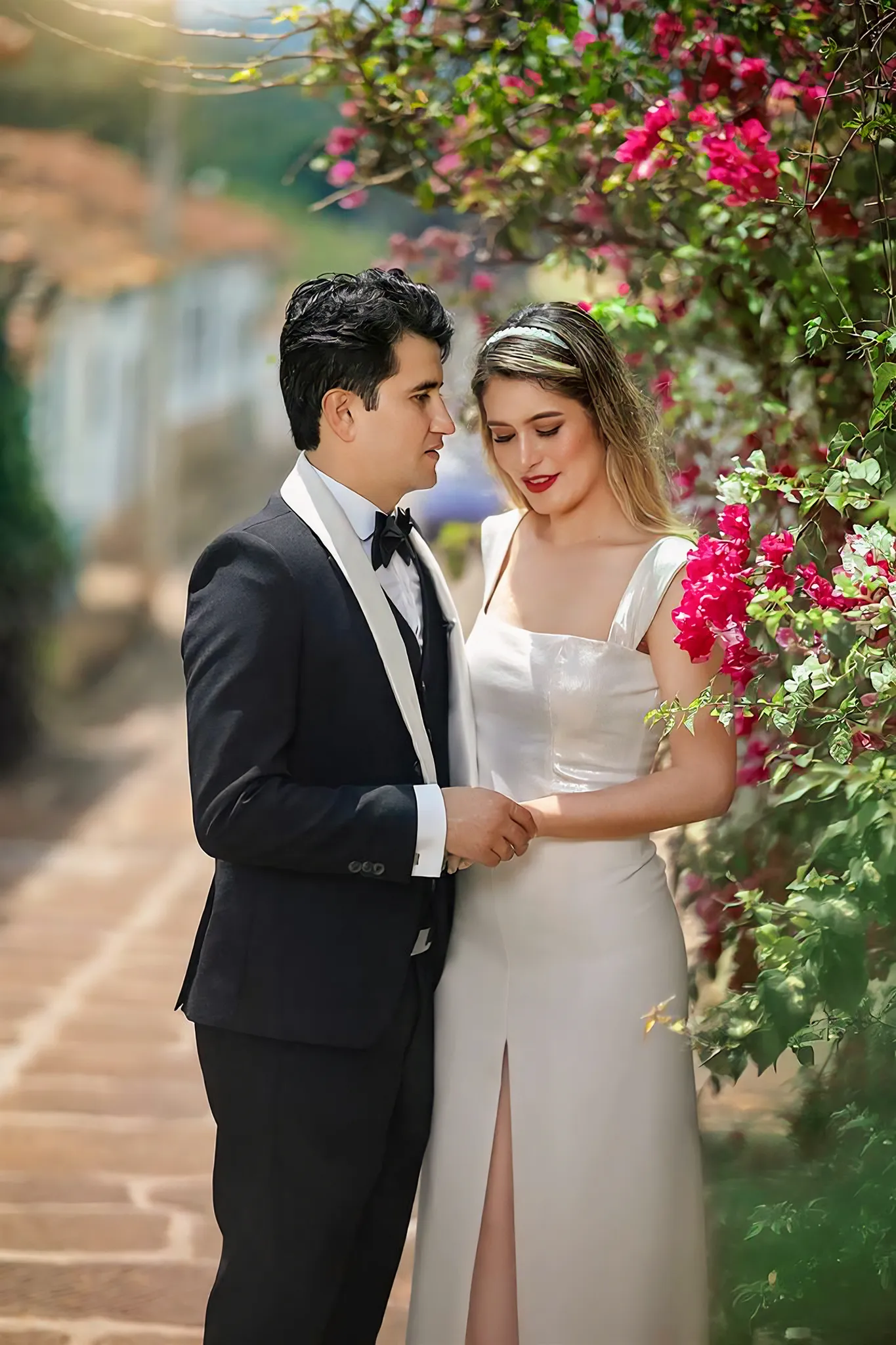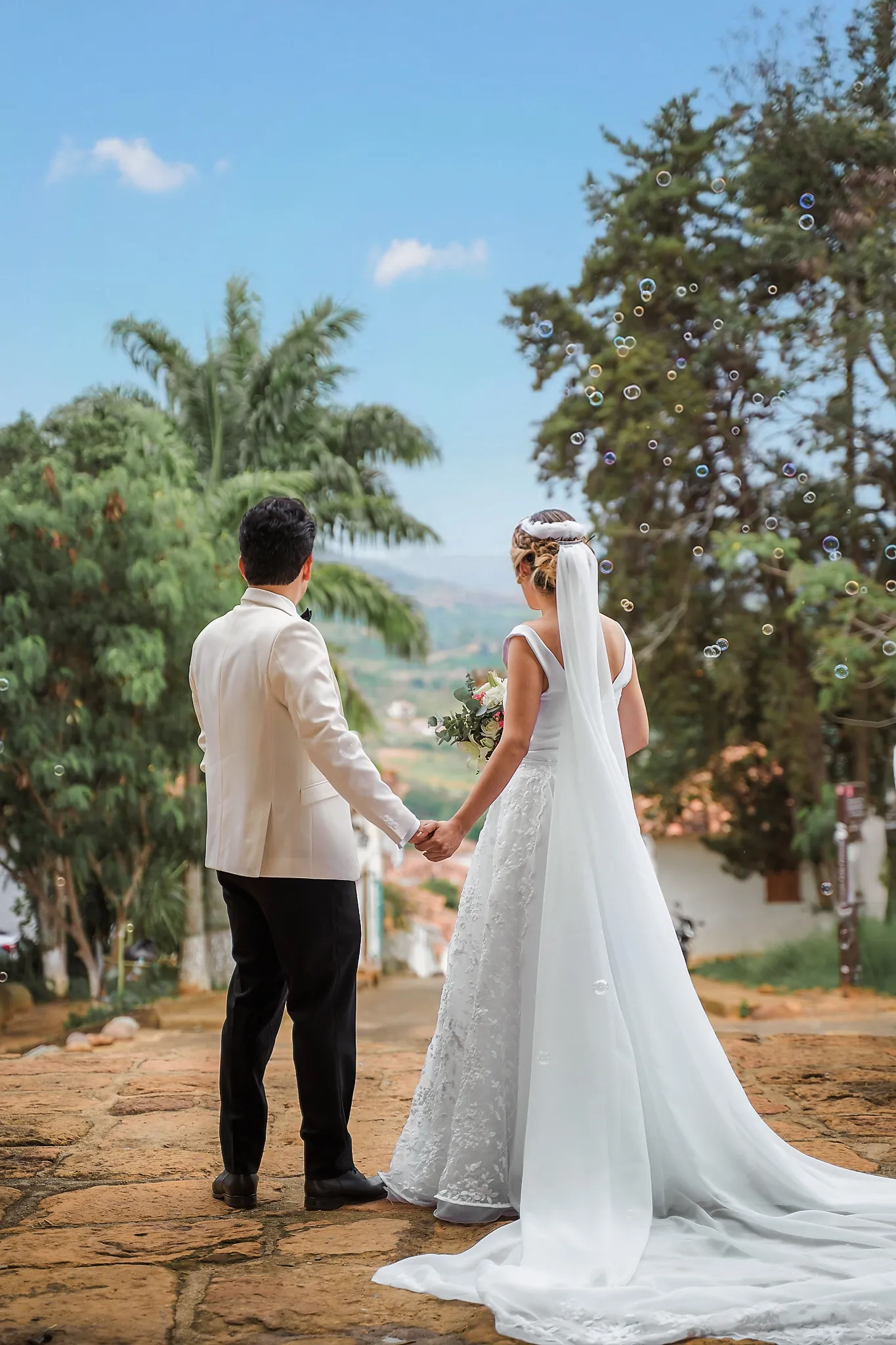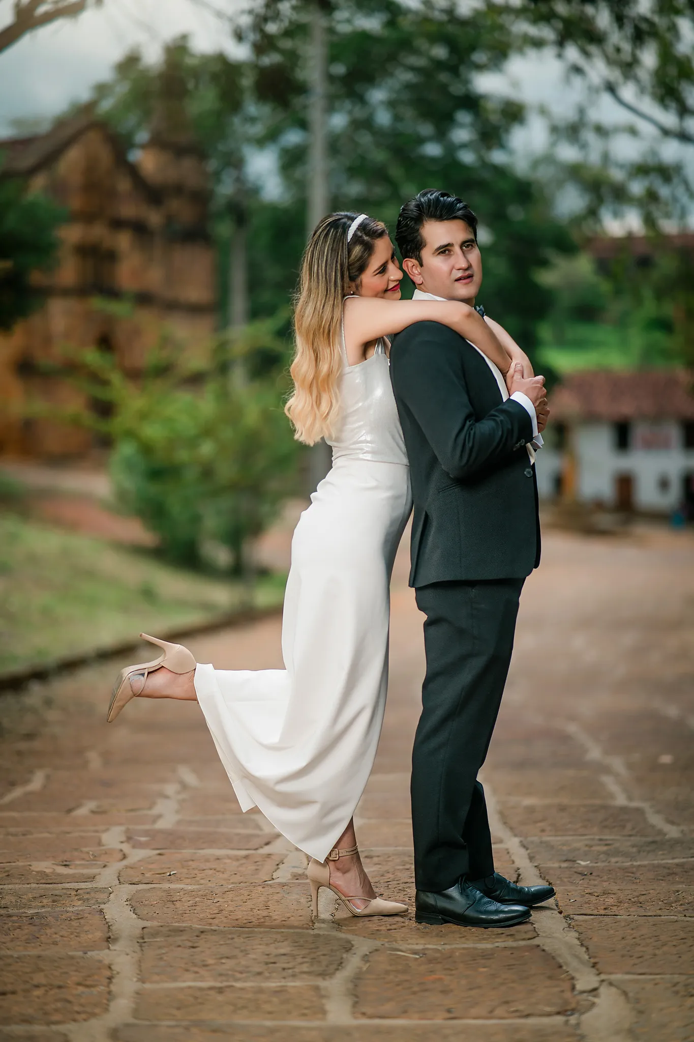 Sindy y Leandro celebraron su unión en uno de los pueblos más románticos y pintorescos de Colombia: Barichara, Santander. La jornada comenzó con una hermosa sesión de fotos preboda realizada horas antes de su ceremonia