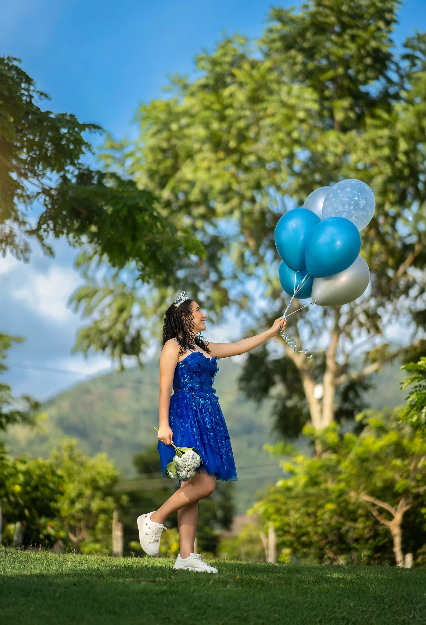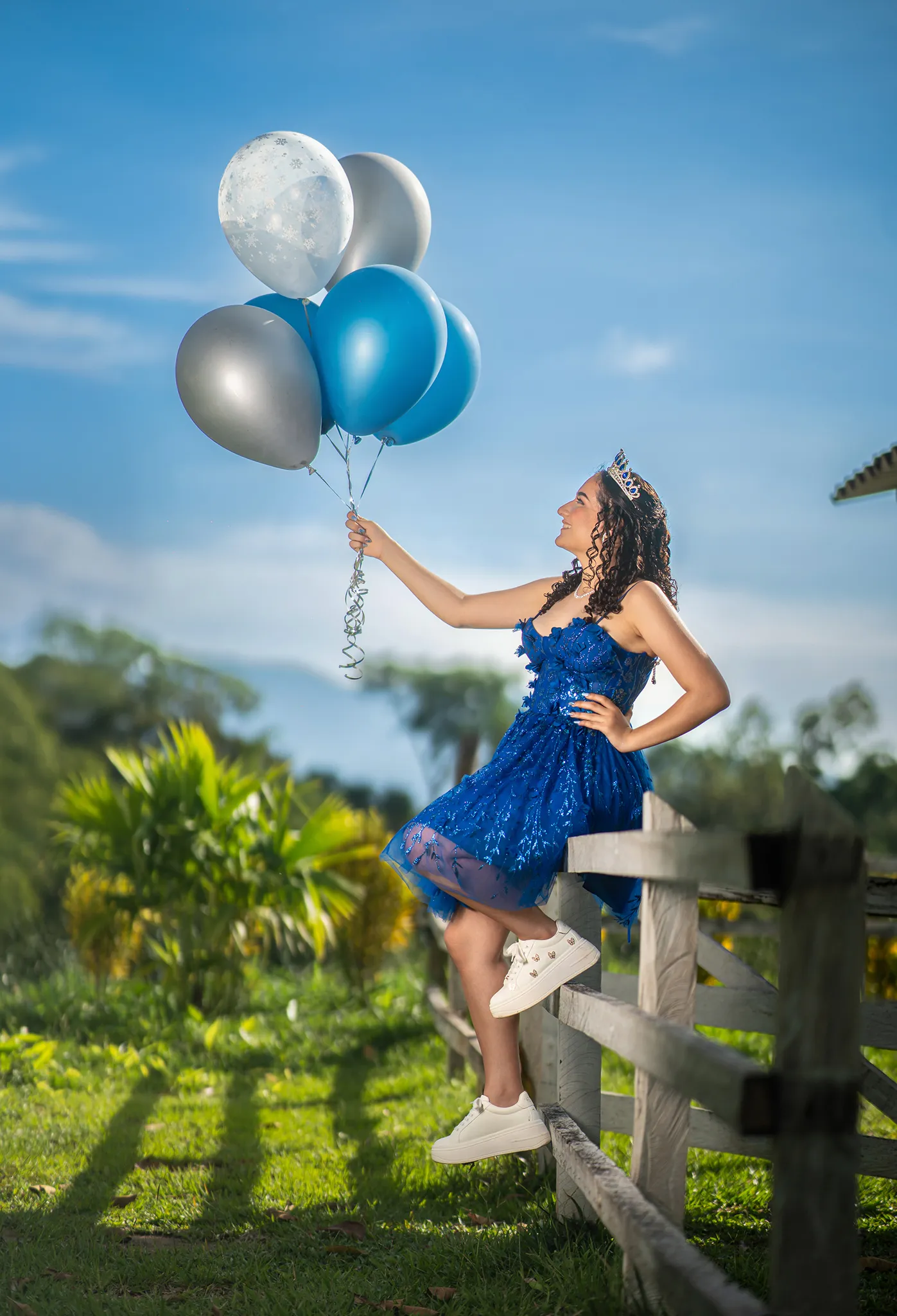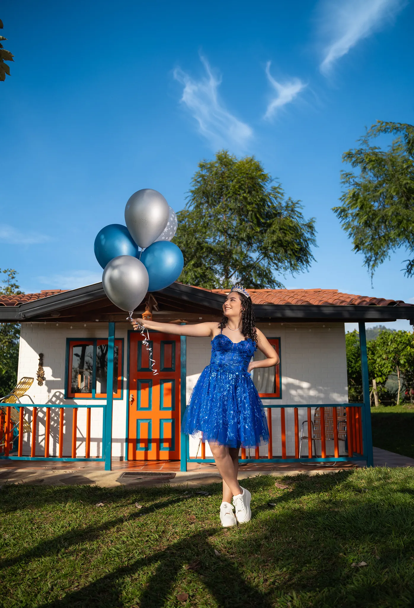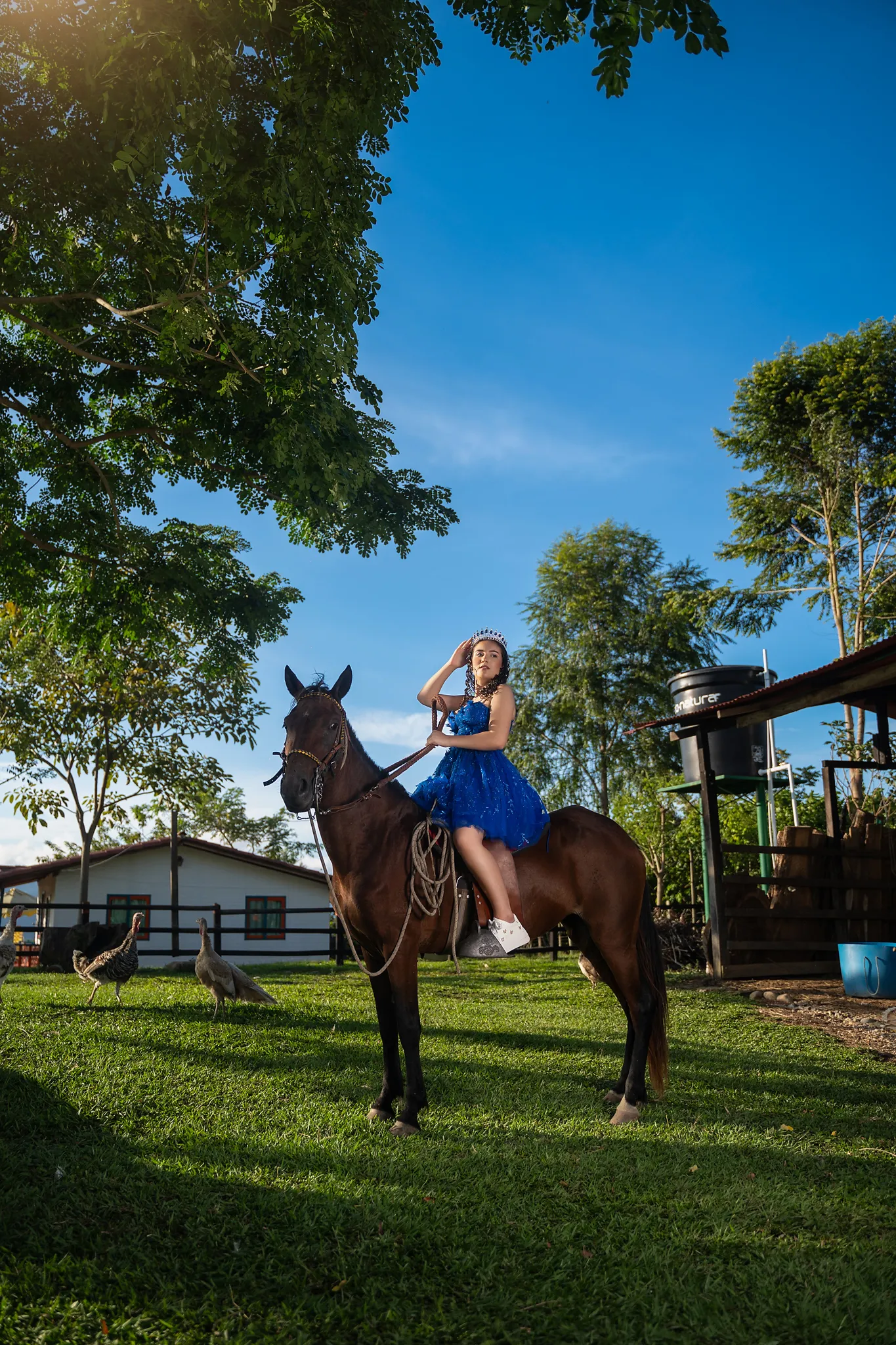 Cada rincón de la finca sirvió como escenario perfecto para capturar su energía y su ilusión por este momento tan especial. Desde retratos delicados entre árboles hasta escenas dinámicas en exteriores, esta sesión fue una celebración visual del crecimiento y la juventud.