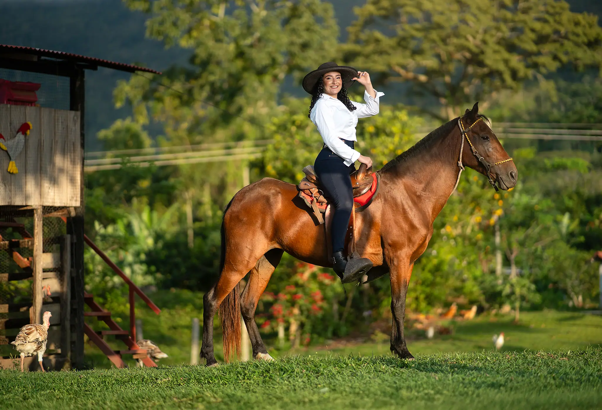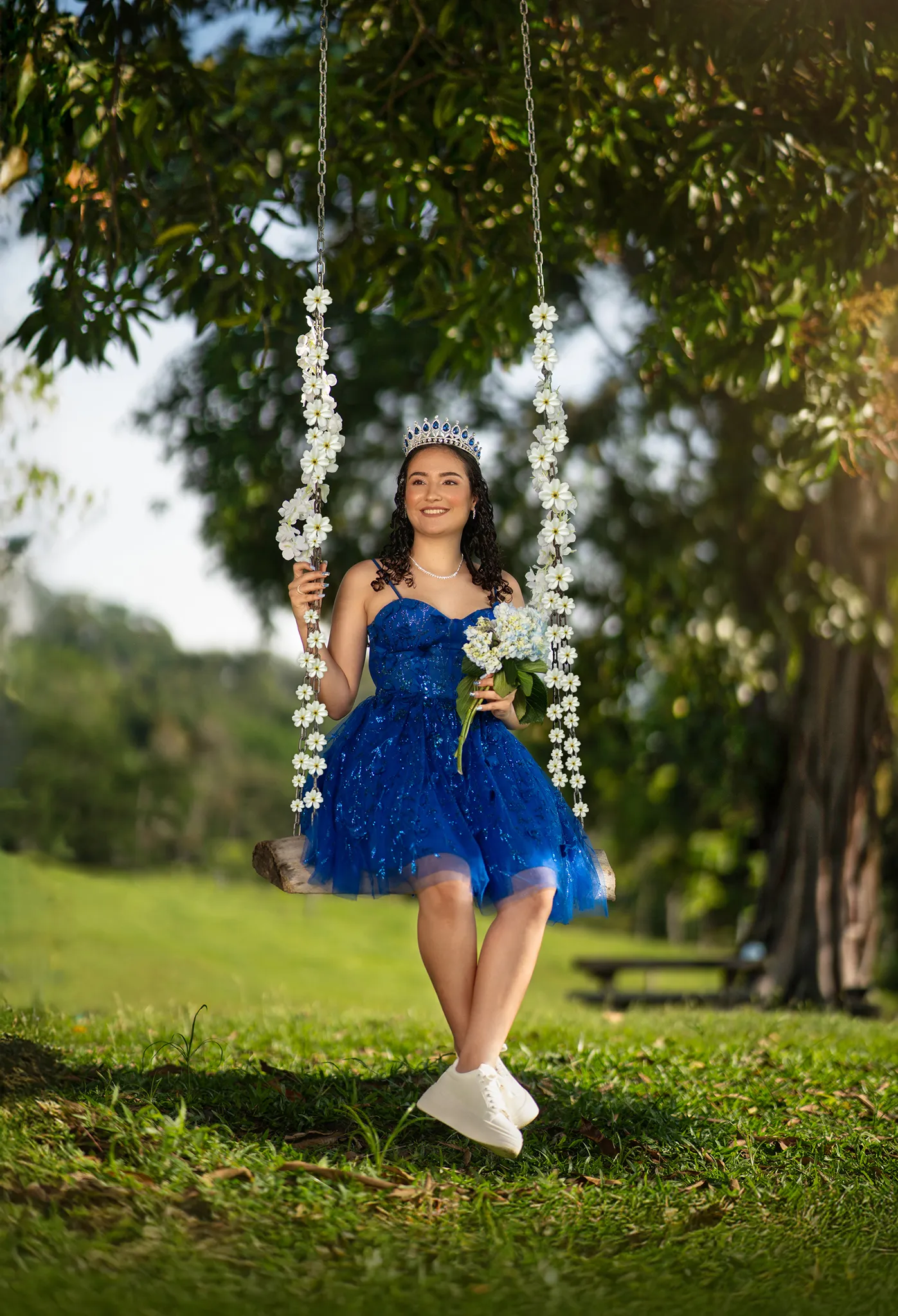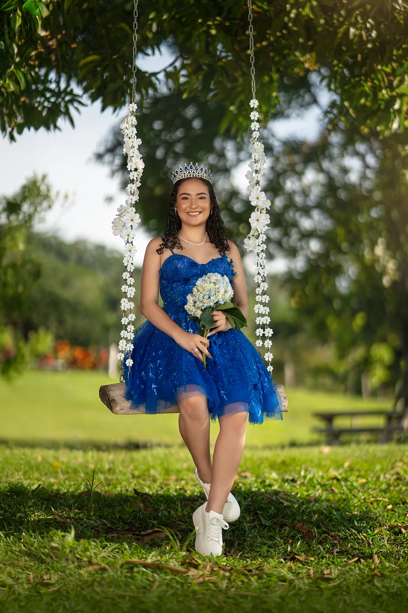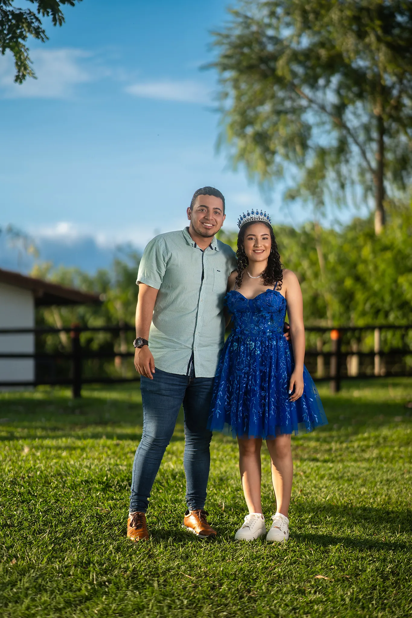 Cada rincón de la finca sirvió como escenario perfecto para capturar su energía y su ilusión por este momento tan especial. Desde retratos delicados entre árboles hasta escenas dinámicas en exteriores, esta sesión fue una celebración visual del crecimiento y la juventud.