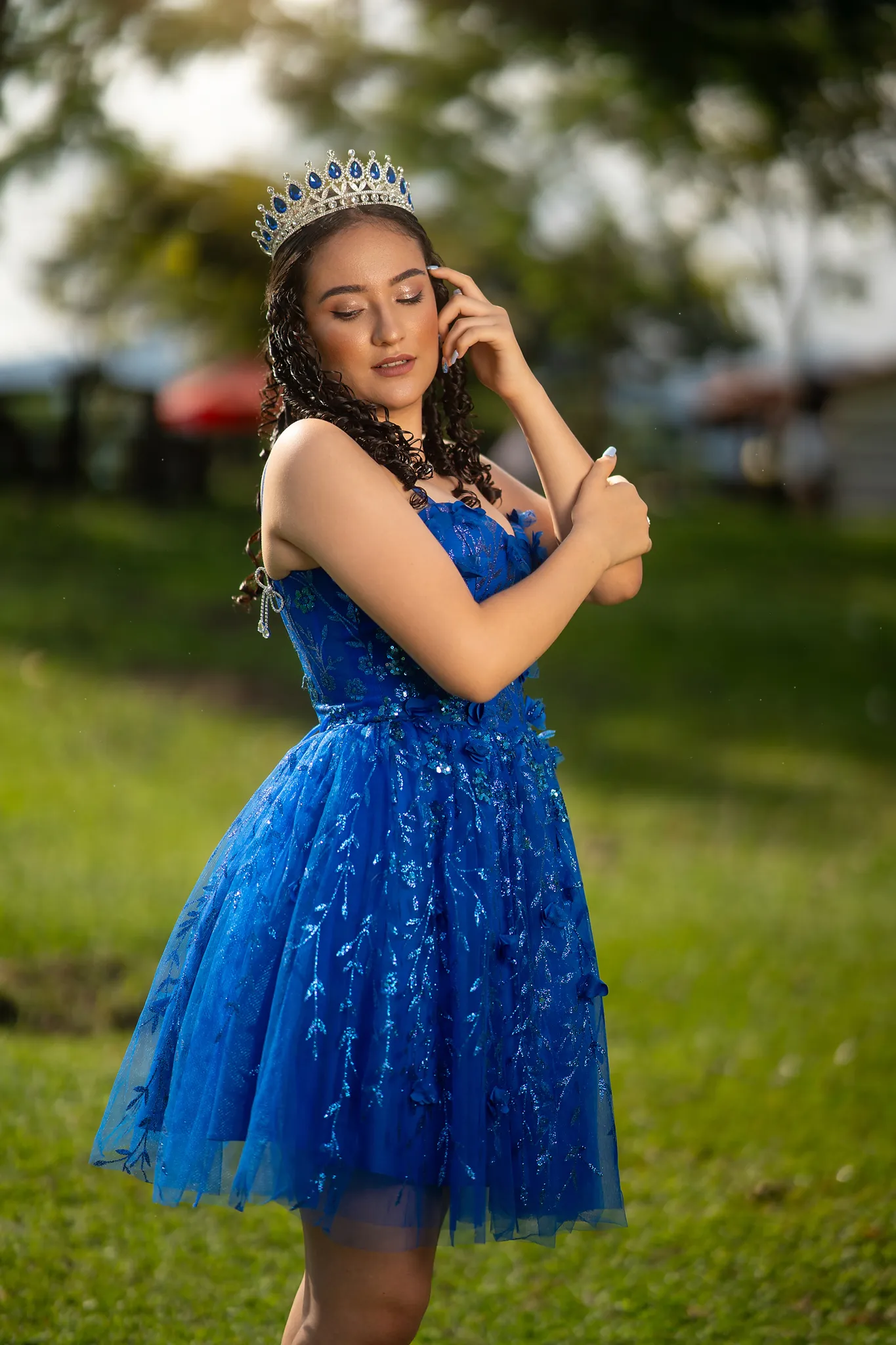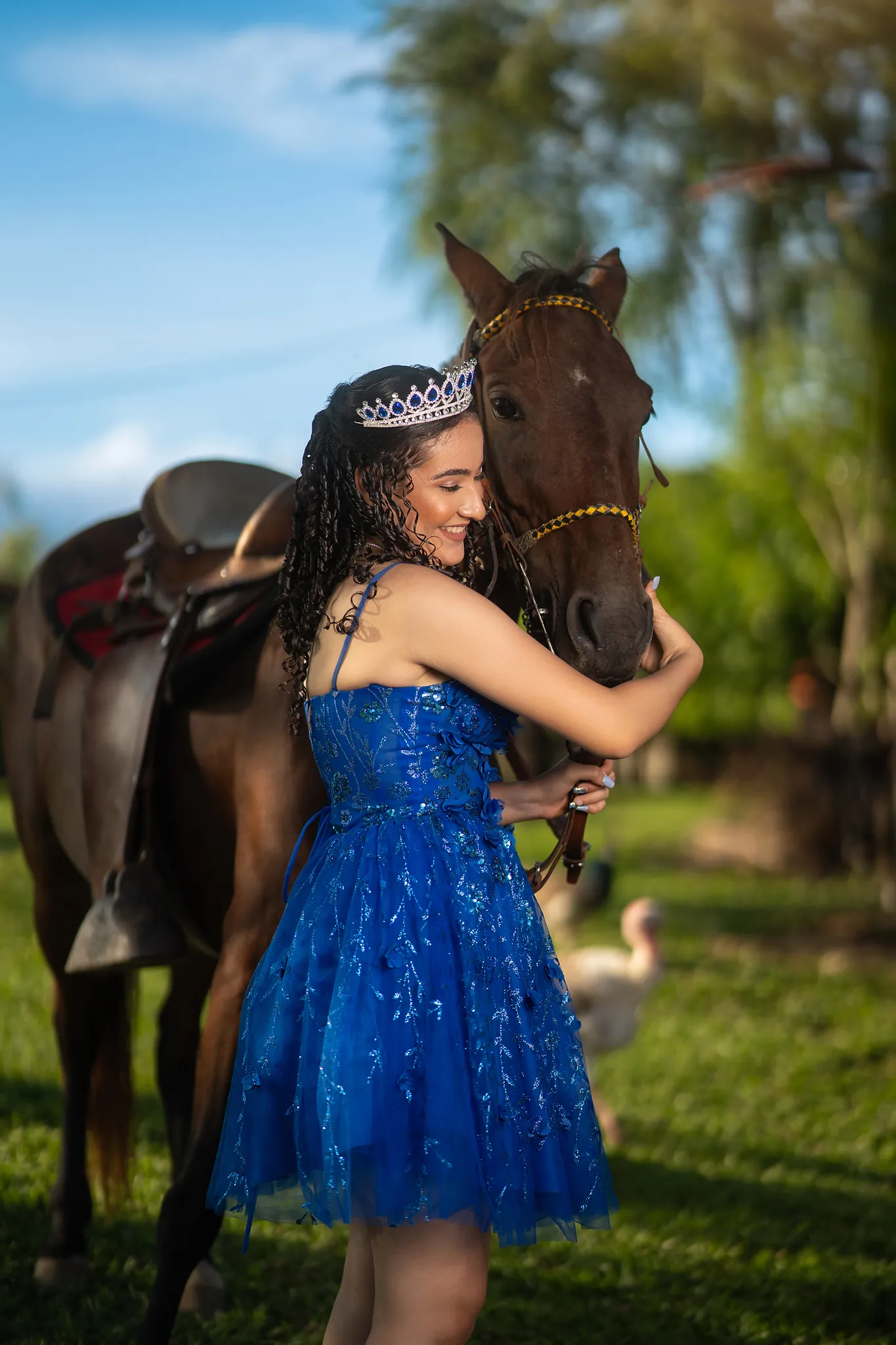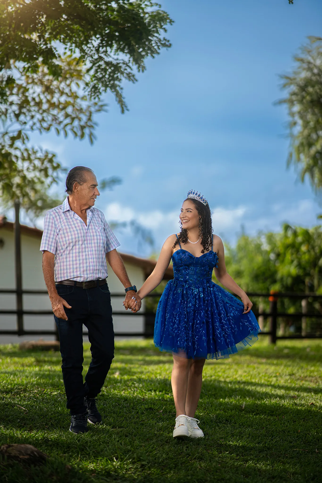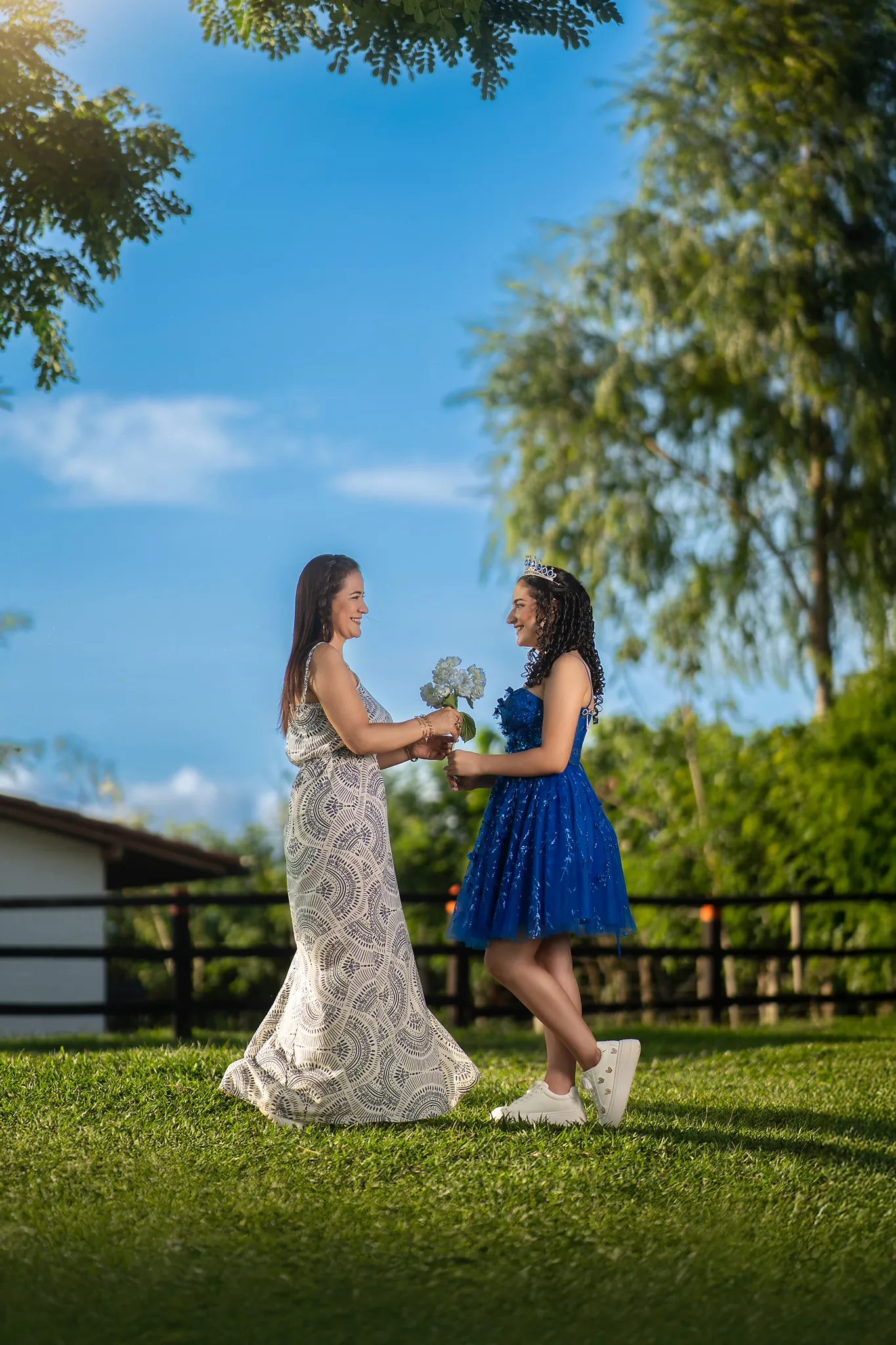 Cada rincón de la finca sirvió como escenario perfecto para capturar su energía y su ilusión por este momento tan especial. Desde retratos delicados entre árboles hasta escenas dinámicas en exteriores, esta sesión fue una celebración visual del crecimiento y la juventud.