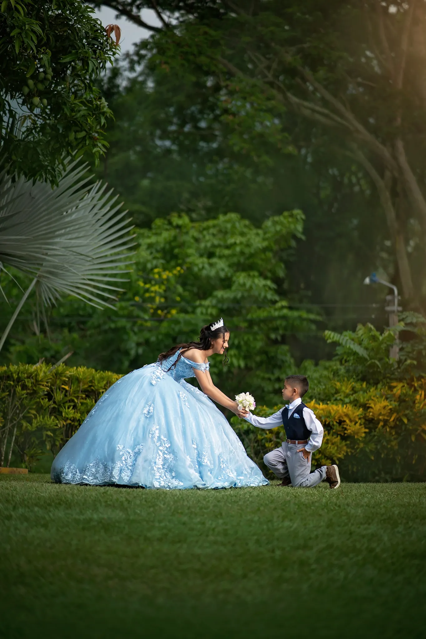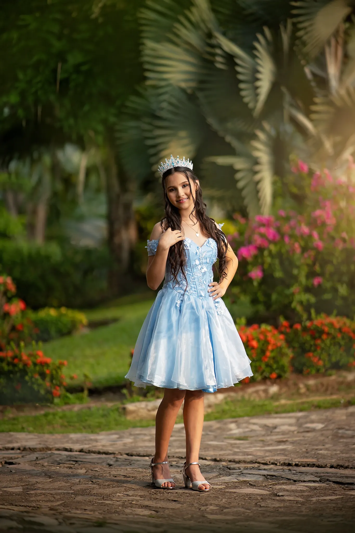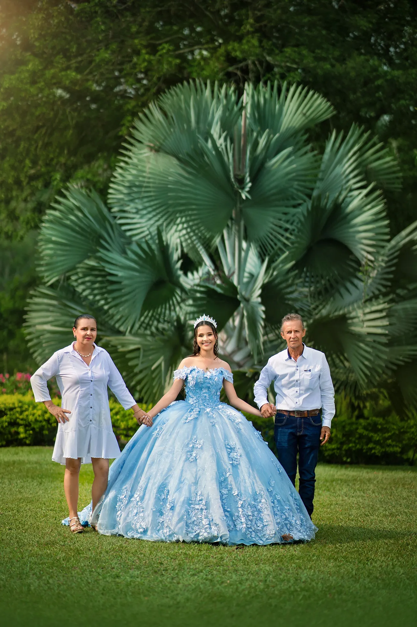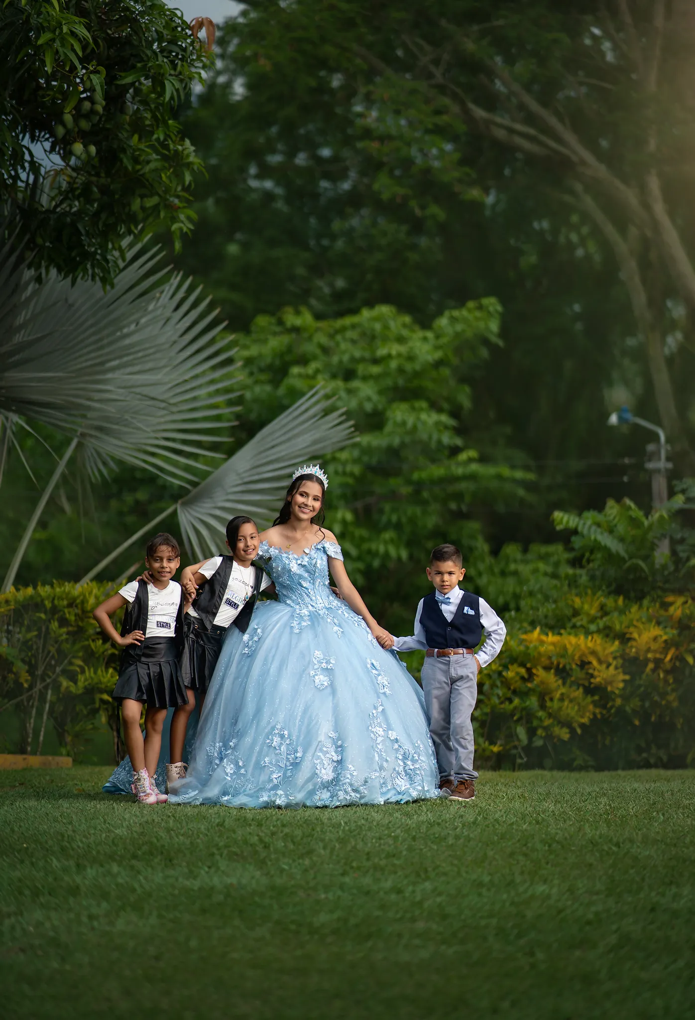 Estefani celebró la ilusión de sus quince con una sesión prequince elegante y llena de estilo. Luciendo un vestido azul que resaltaba su personalidad y dulzura, globo con el número 15, ramo de flores y el cariño de su familia.