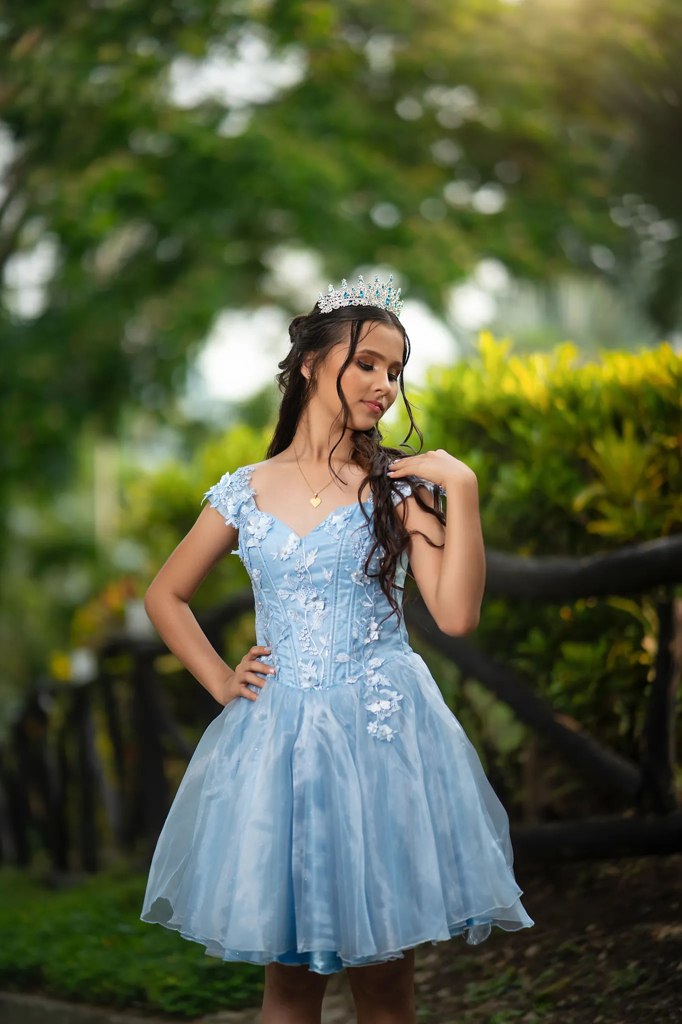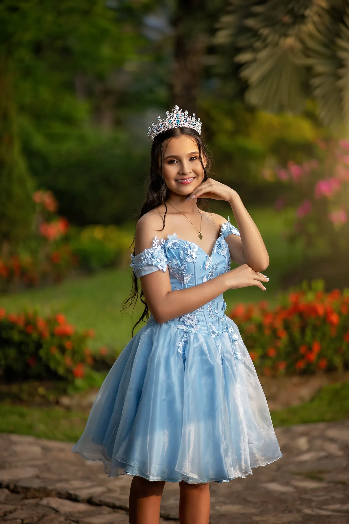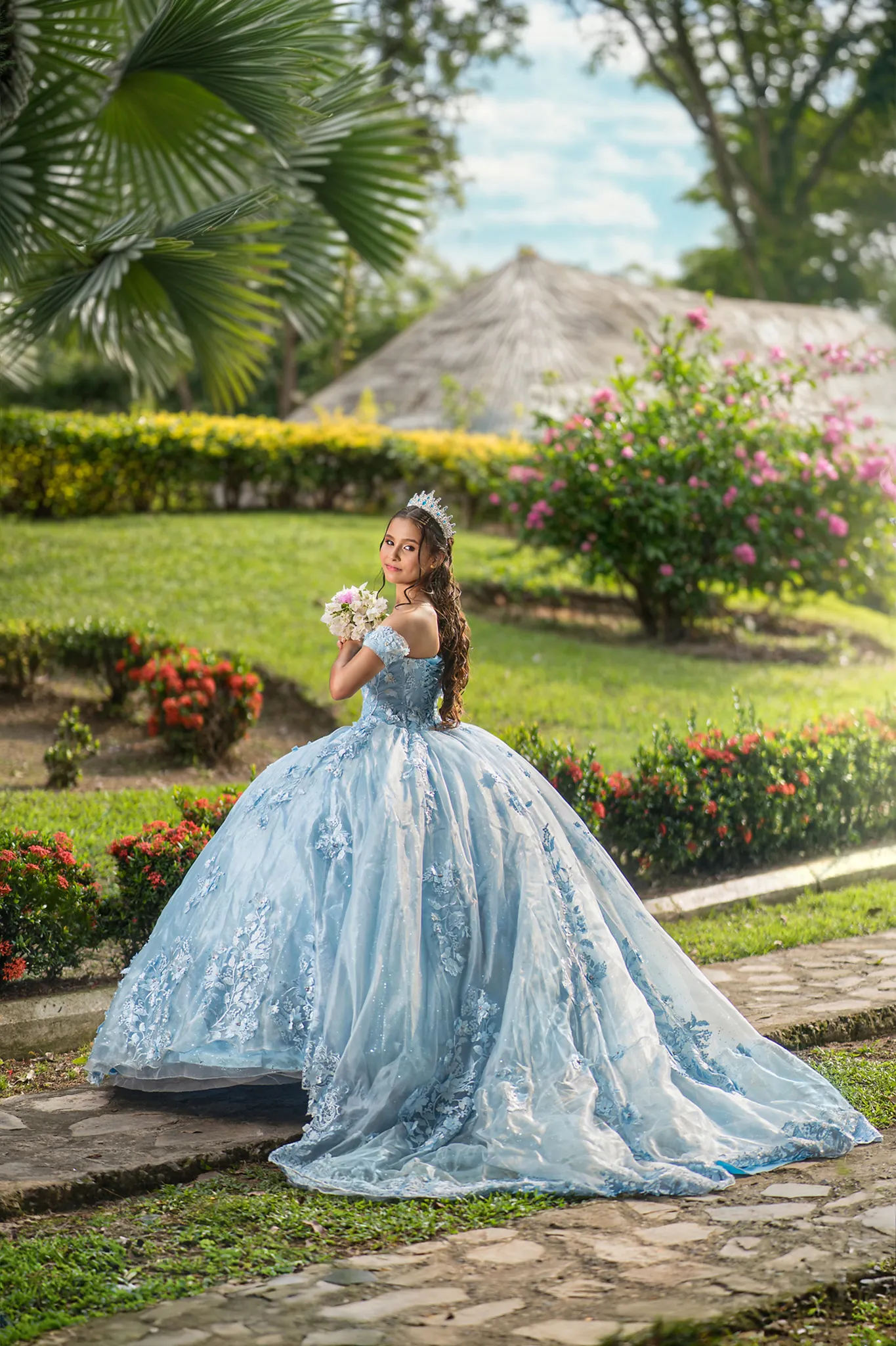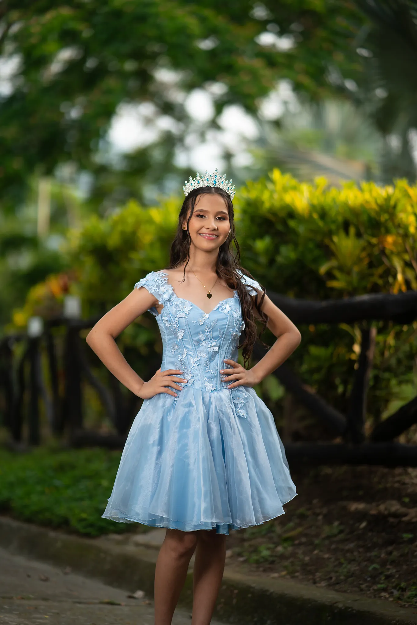 Estefani celebró la ilusión de sus quince con una sesión prequince elegante y llena de estilo. Luciendo un vestido azul que resaltaba su personalidad y dulzura, globo con el número 15, ramo de flores y el cariño de su familia.